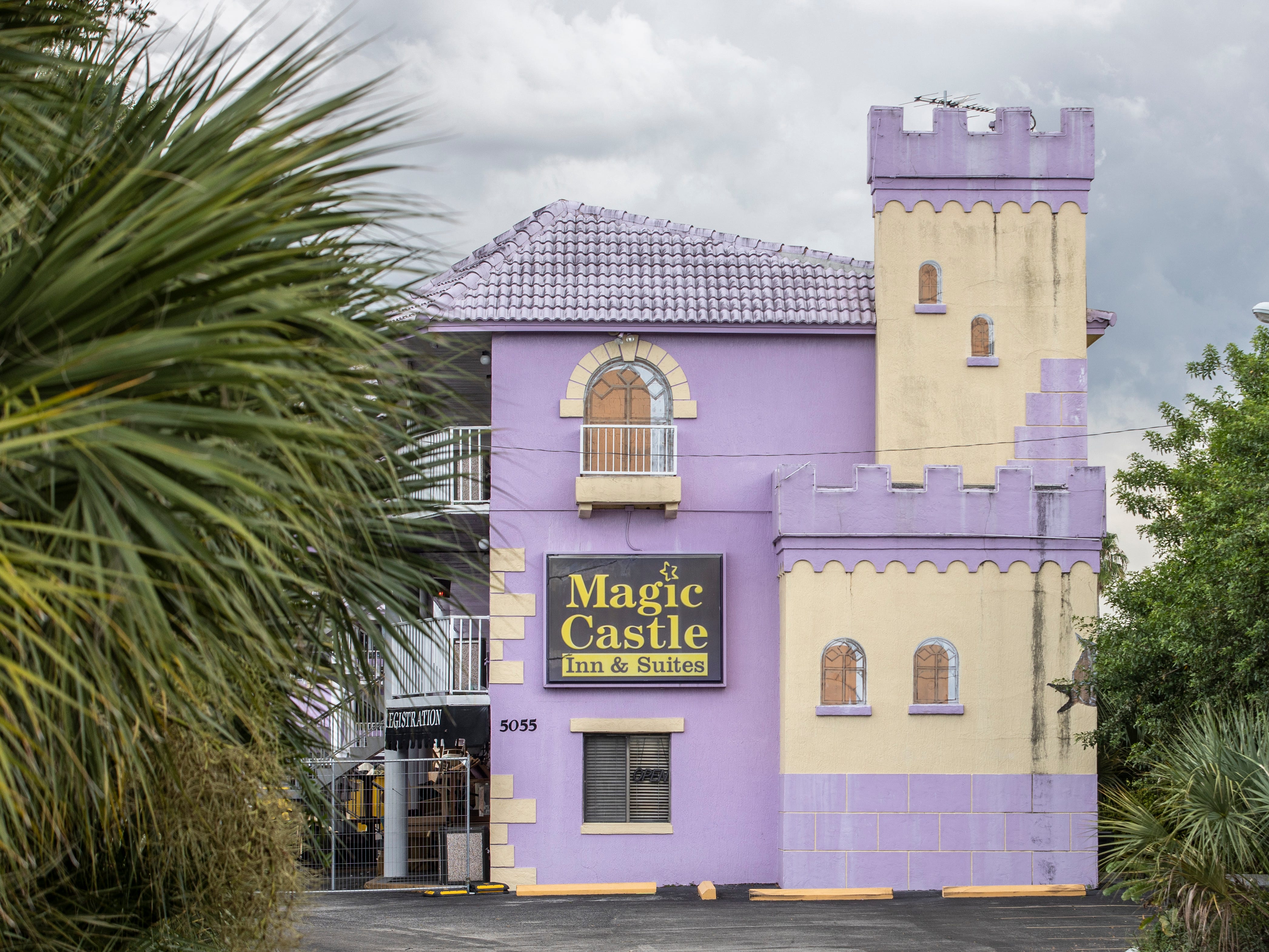 The real-life setting of the film also sent me down numerous Wikipedia rabbit holes themed around ‘novelty architecture’. We watch the kids traipsing past Eli’s Orange World, a large, orange-shaped fruit stand, and the Giant Wizard gift shop, complete with a terrifying wizard’s head. Even the purple motel they call home is a real place you can book into, all located on this slightly depressing stretch of highway on the way to Disney World.