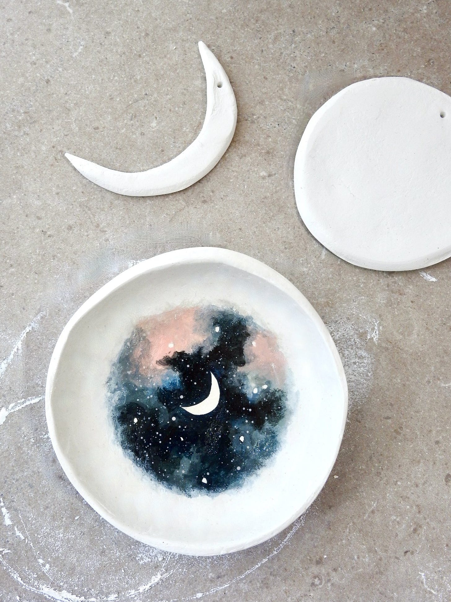 You can either give the trinket dish as a Christmas present or keep it for yourself - it’s perfect for jewellery, tealights (in a metal case), keys or desktop bits and bobs. You could also paint this design onto festive baubles, pendants and plaques if you enjoy using the clay.